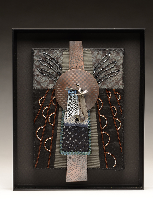 fabric, glass beads.