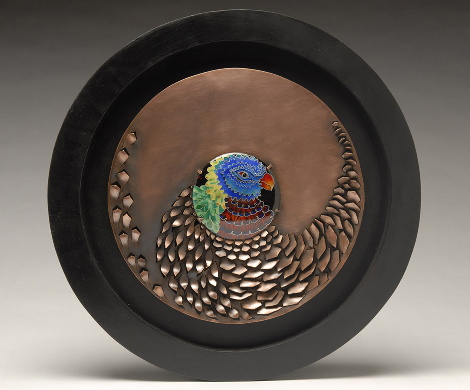 Molly PalacekFramed enamel “Rainbow Lorikeet” Copper, enamel, silver, wood