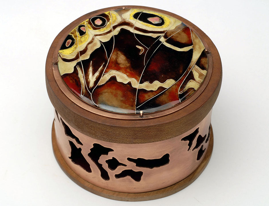 Sloane SwayzeBox with enamel lid “Repository for elusive loves” Copper, silver, wood