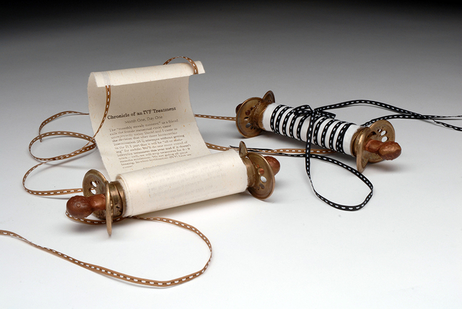 Infertility journey scroll, Cast bronze, brass, copper, fiber, paper
